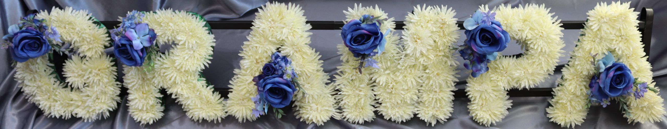 Every letter is carefully built by hand and finished with the highest-quality artificial cream Chrysanthemums, chosen for their realistic appearance, elegance, soft texture and timeless beauty.
