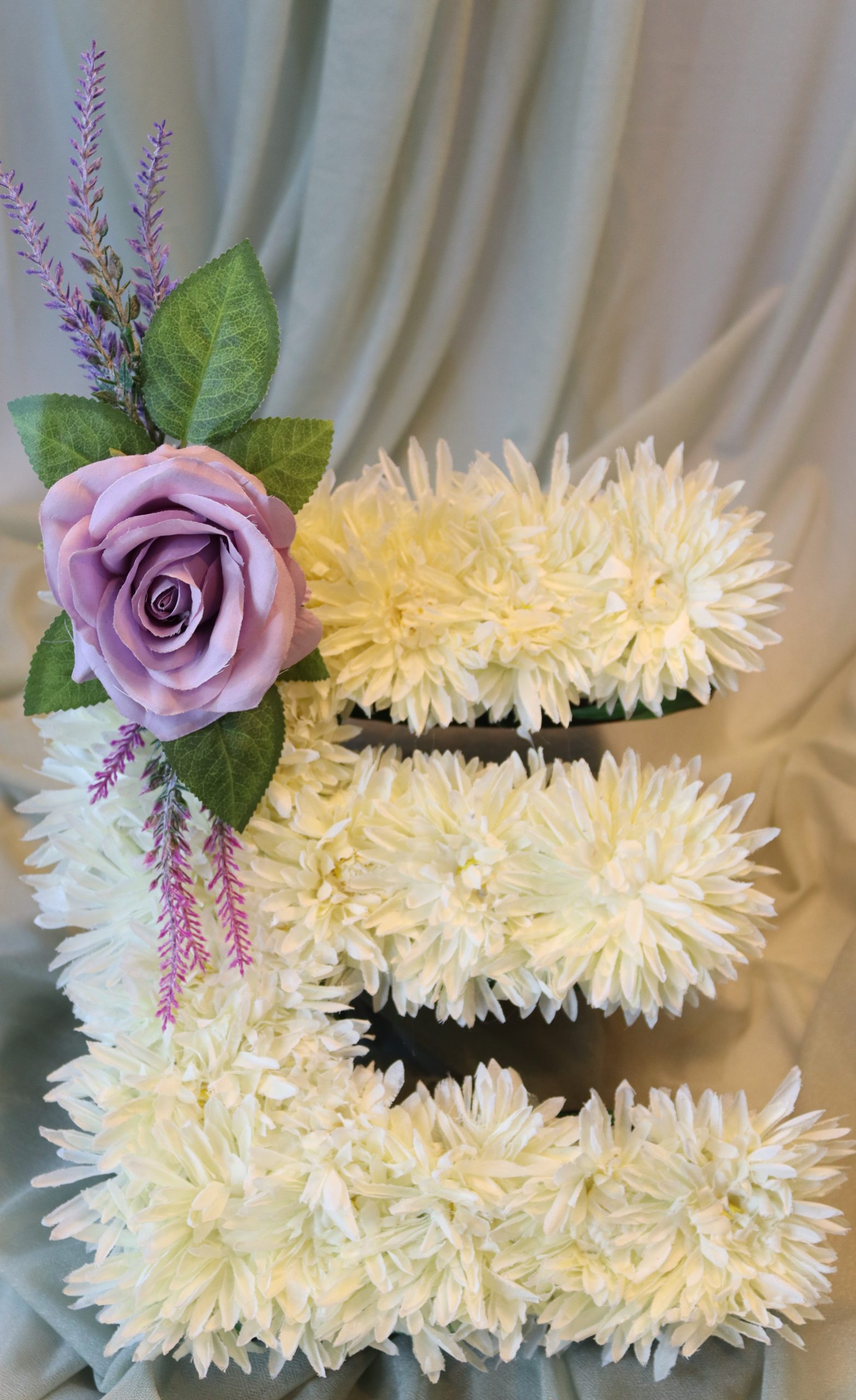 Handcrafted with care, this letter corsage perfectly complements the orange and peach casket spray, creating a coordinated and meaningful display. A lovely addition to any letter tribute, it offers a touch of beauty, serenity, and remembrance.